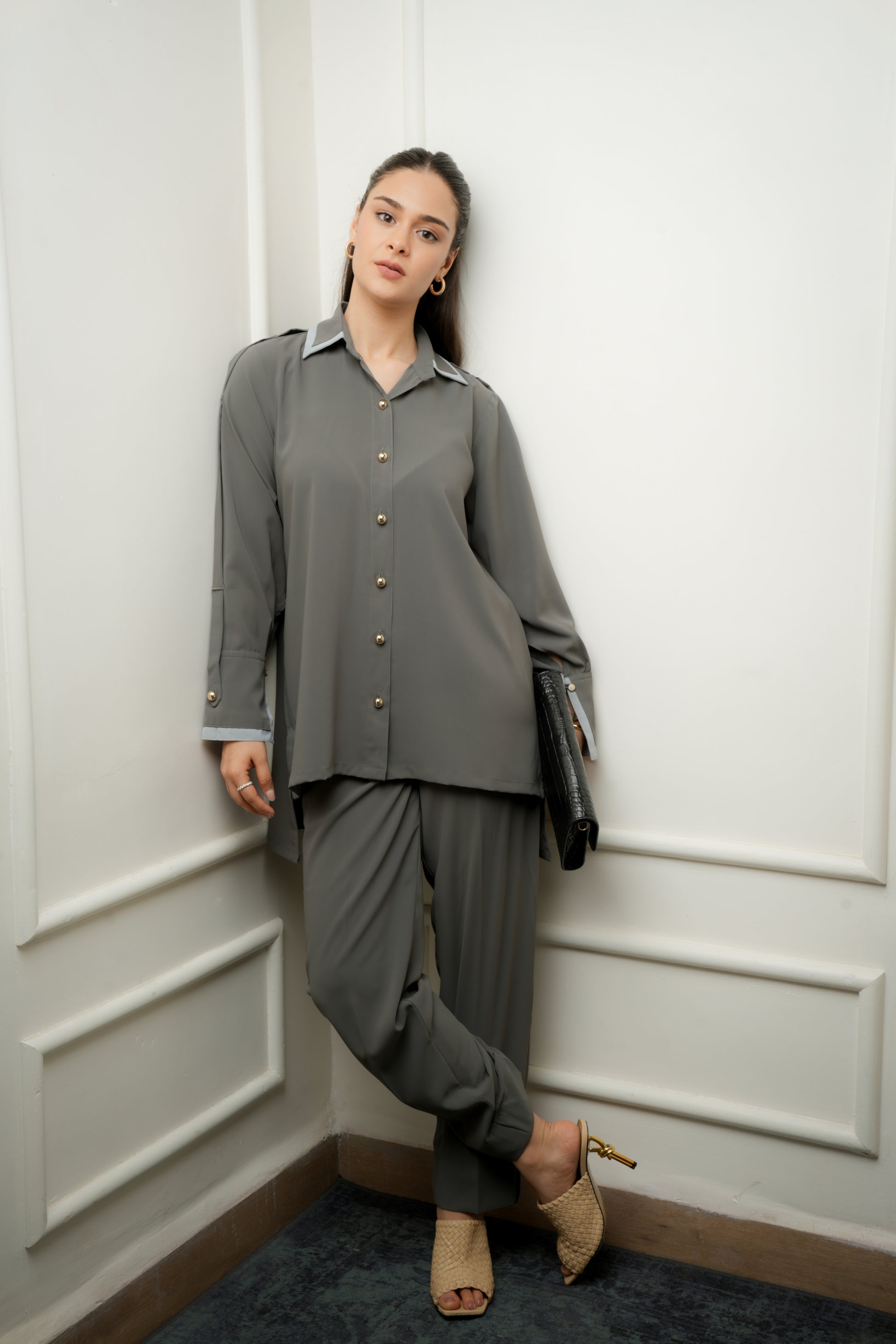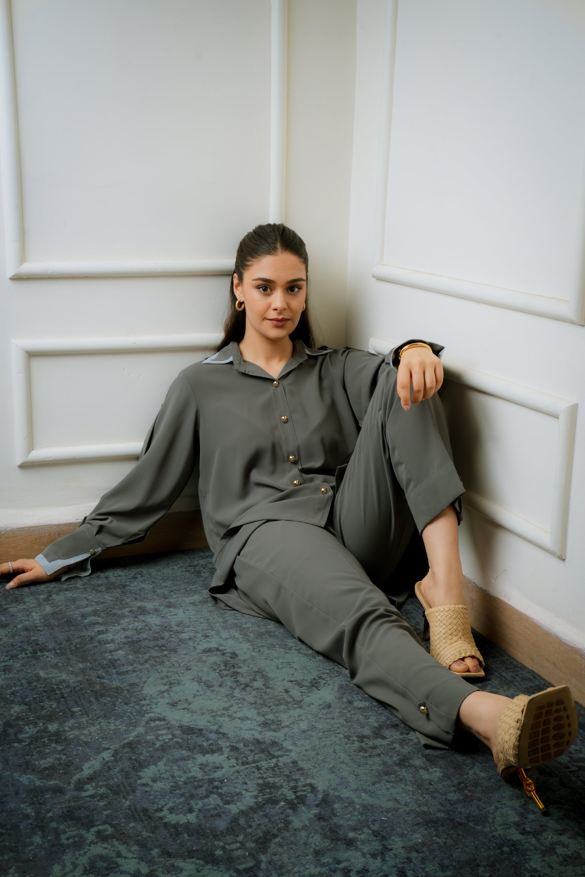 Effortlessly refined, the Velisse Abaya is an ode to timeless sophistication. Crafted from luxurious jet-black fabric, it features an inner panel adorned with delicate lace and shimmering sequin work, creating a play of texture and light. The fluid silhouette drapes gracefully, making it perfect for evening occasions and elegant gatherings.