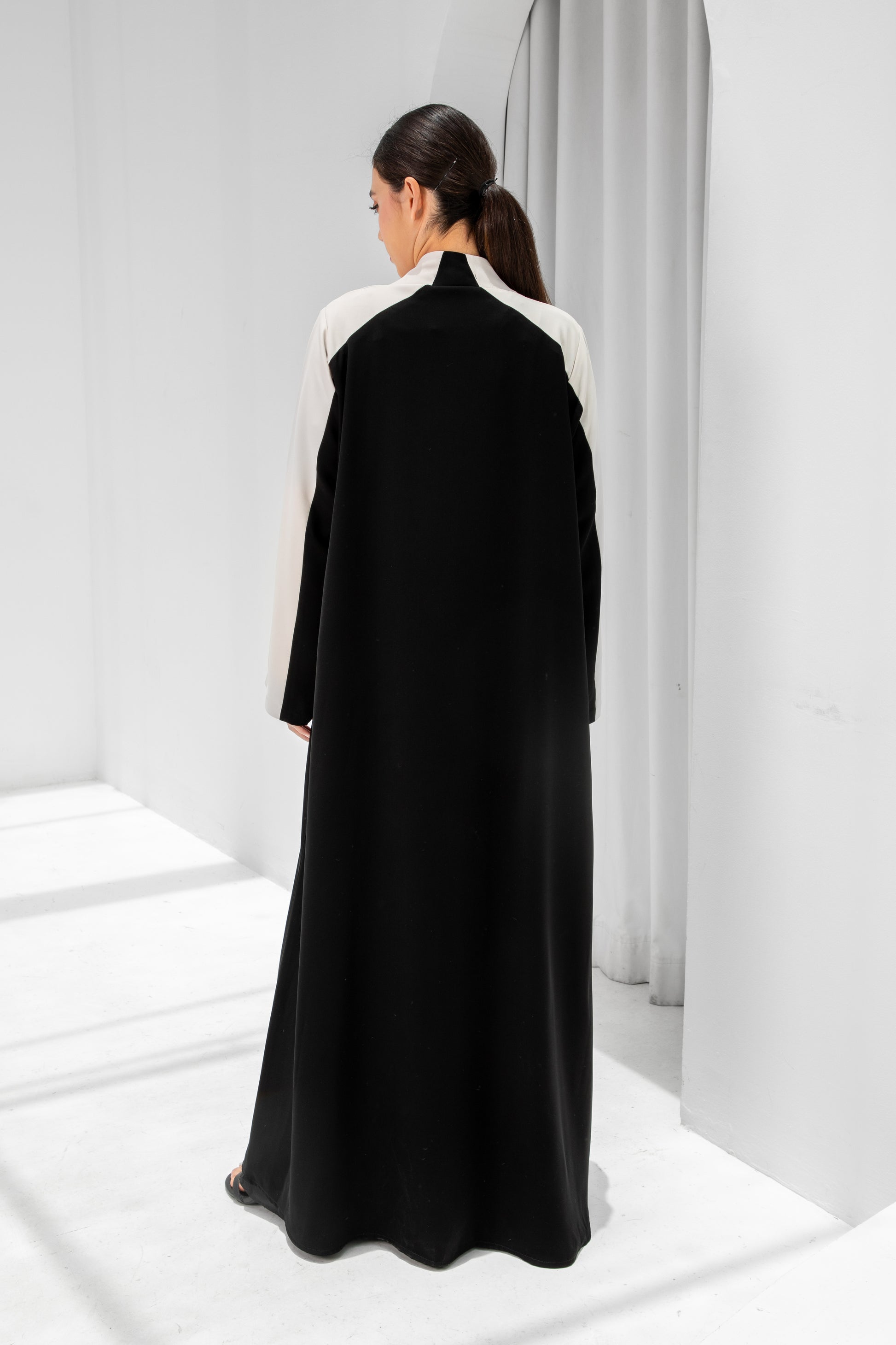 Discover effortless elegance with the Eclipse Abaya. Designed with striking black and ivory contrasts, this abaya redefines modern modest wear. Its premium fabric and flowing silhouette bring comfort, confidence, and sophistication to every occasion. Styled with or without the matching scarf, it’s a versatile piece for timeless wardrobes.
