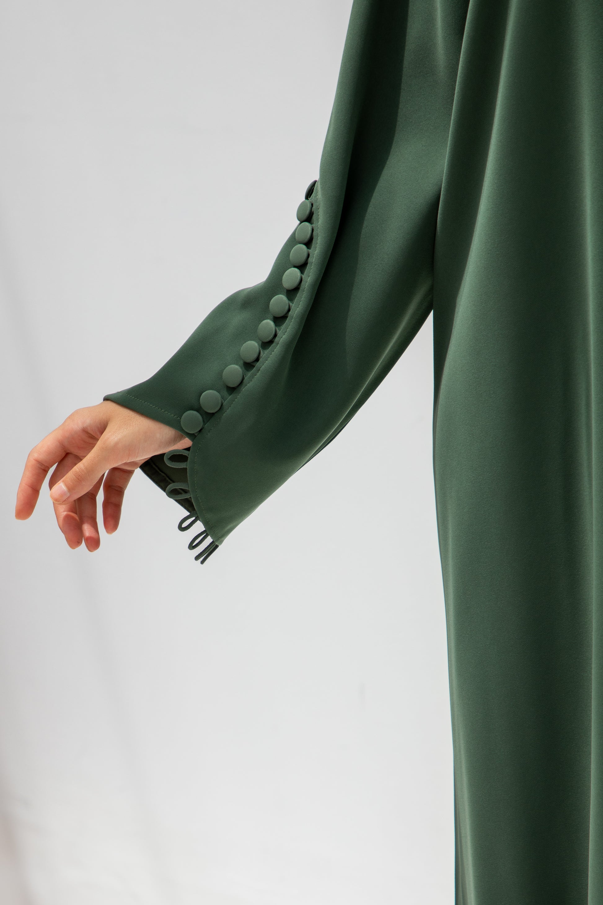 Discover timeless elegance with the Rahiyya Green Abaya, crafted for women who embrace modesty with sophistication. Designed in a rich green hue with intricate button detailing, this abaya offers both comfort and style, making it a versatile choice for daily wear and special occasions.