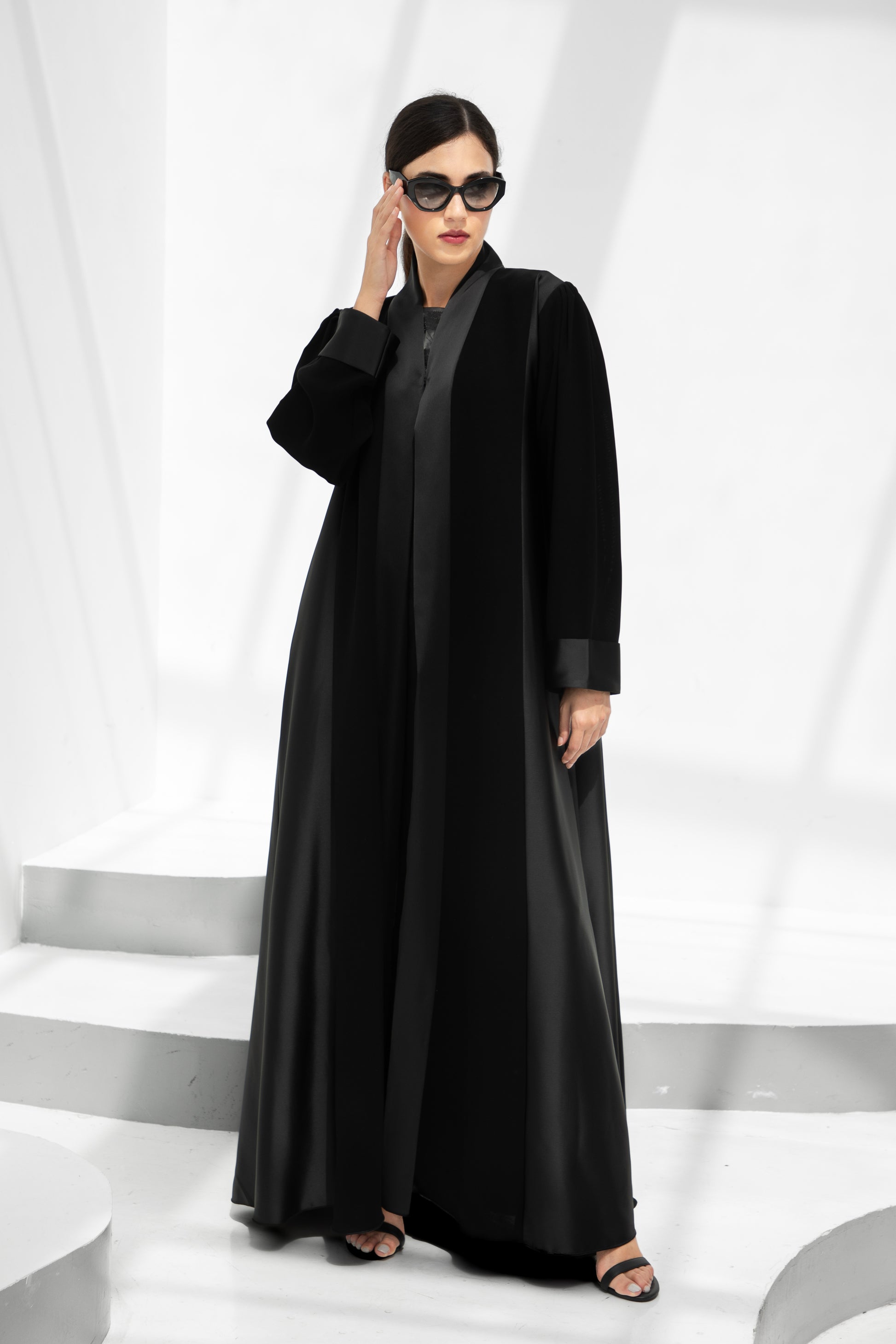 A tribute to the timeless elegance of black, the Sawda Abaya is crafted with flowing fabric and refined satin trims for a sleek, contemporary silhouette. Its graceful movement and luxurious finish make it the perfect statement piece for both everyday wear and special occasions. Classic, versatile, and empowering—Sawda is the ultimate expression of black sophistication.