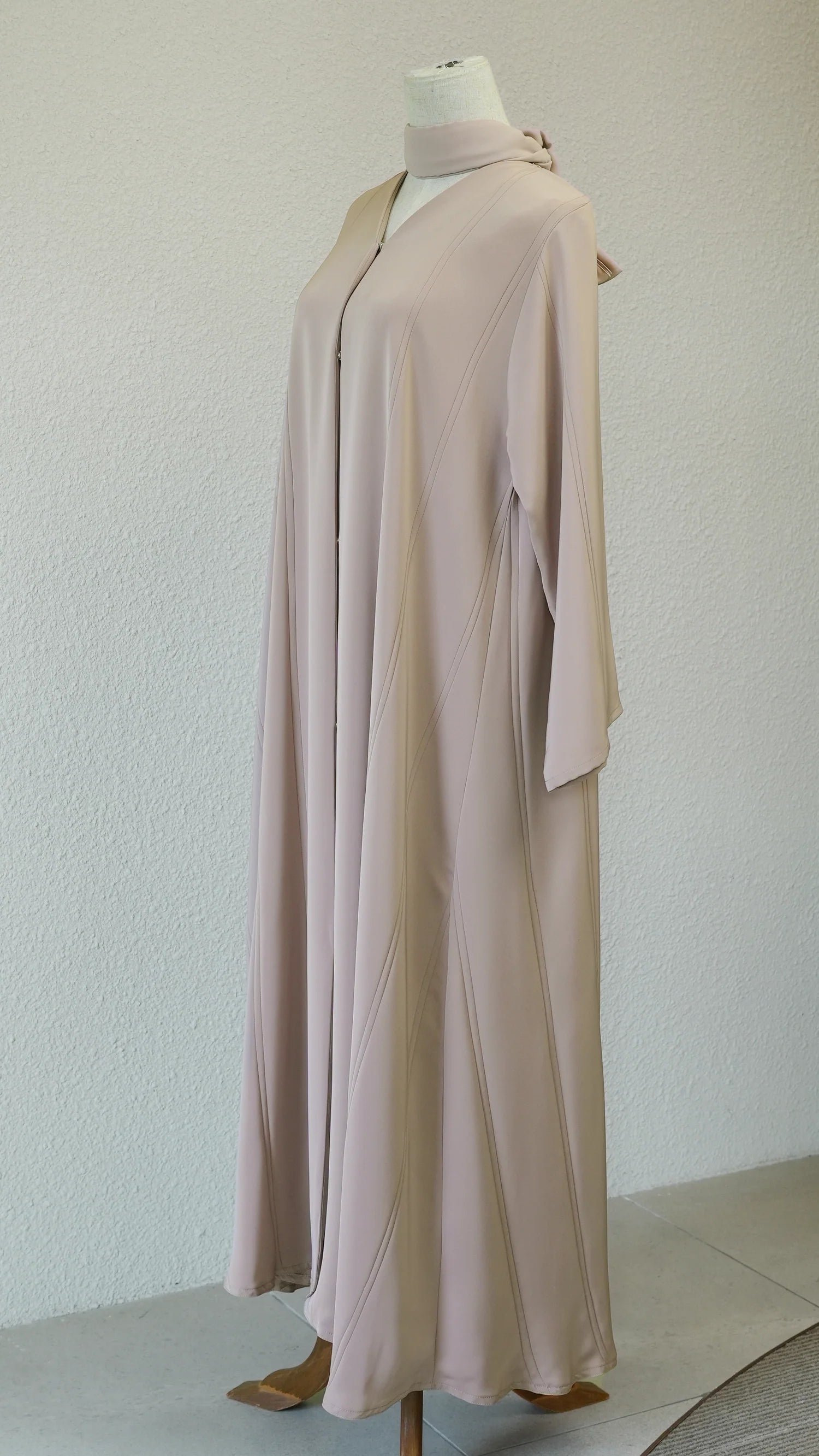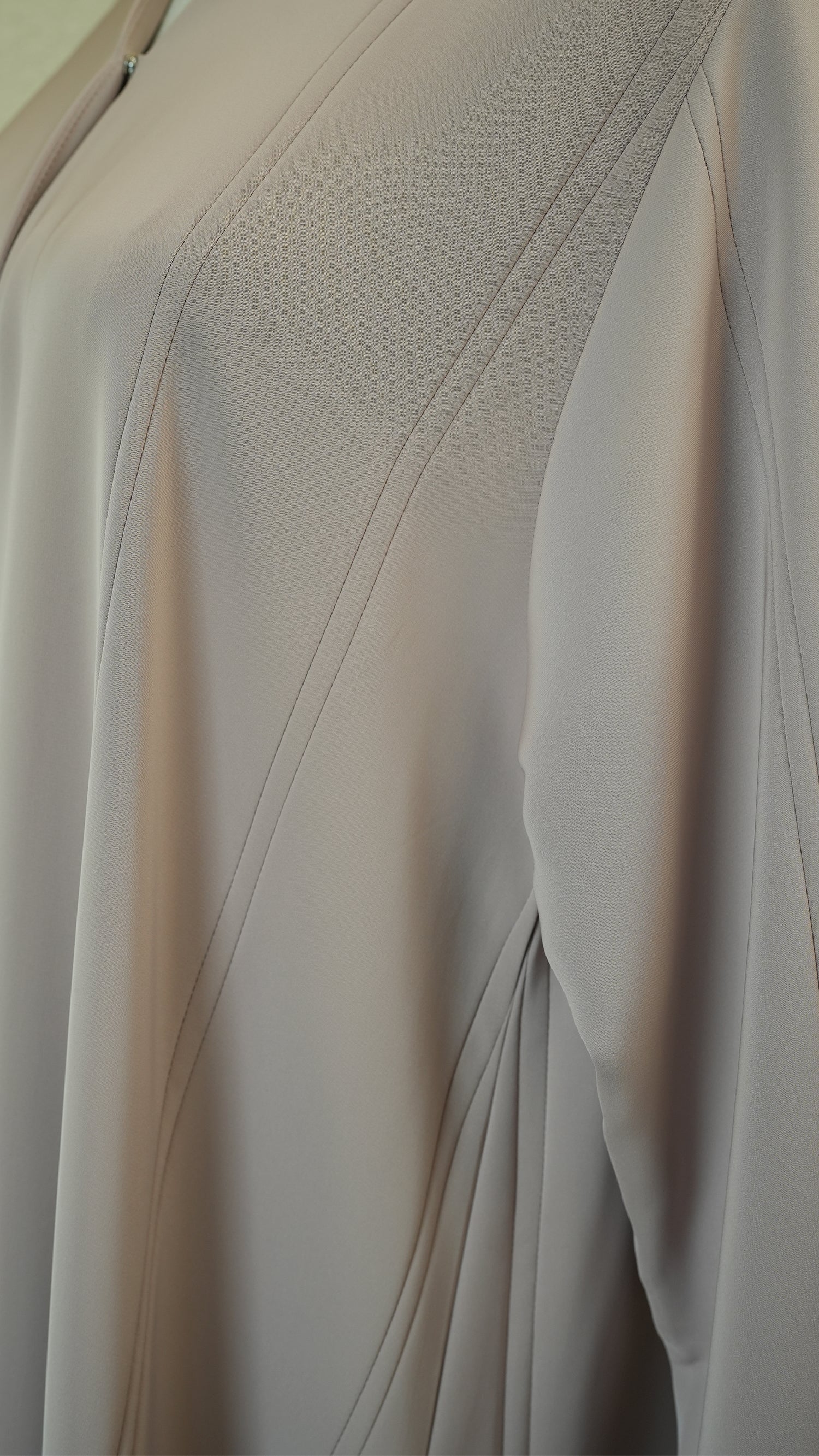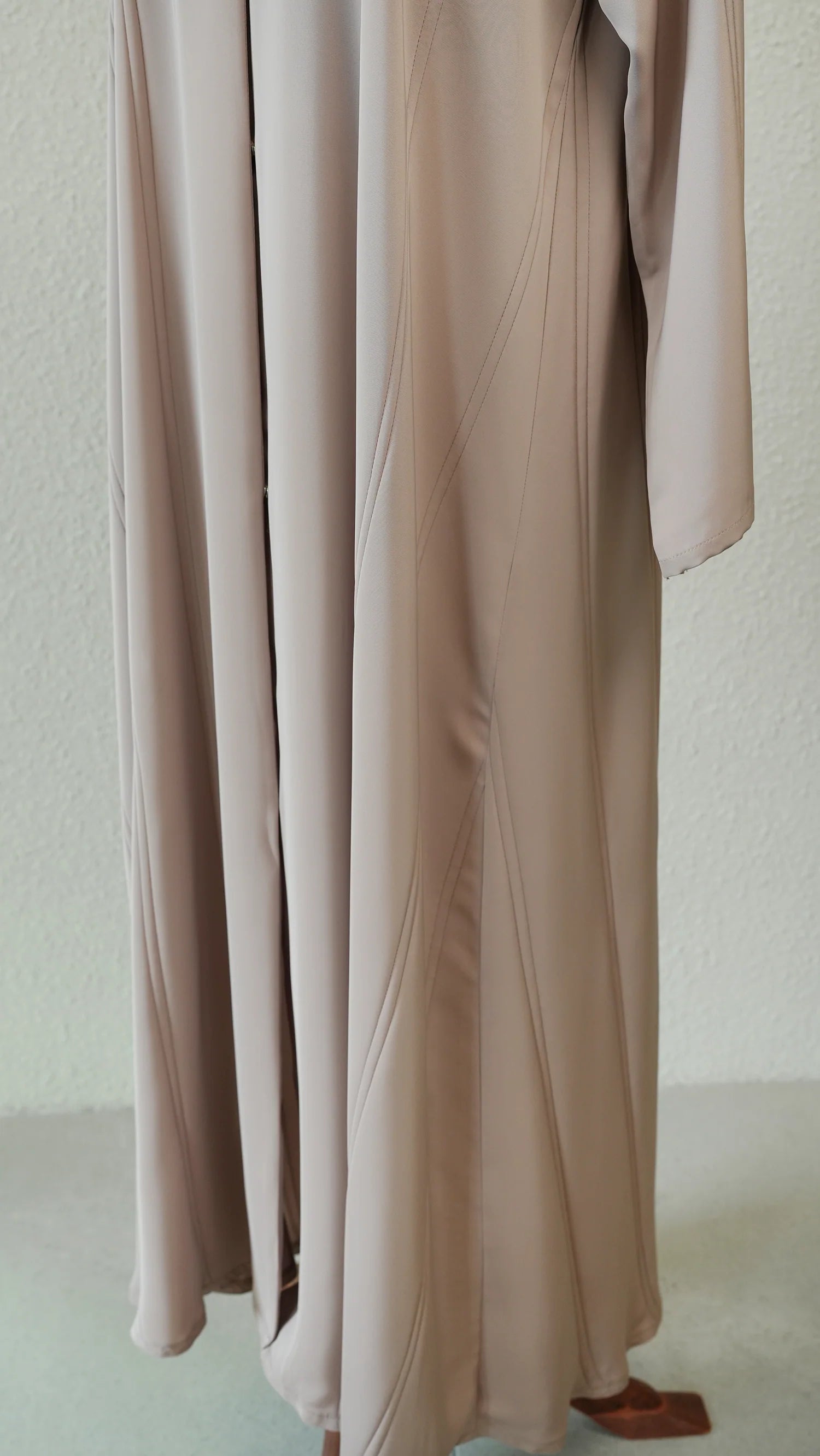 A timeless nude abaya designed with soft tailoring and clean panel details. The minimal silhouette and muted tone make it a wardrobe essential for everyday elegance. Crafted in lightweight fabric with subtle structure, it offers comfort without compromising on style — perfect for work, errands, or effortless layering.